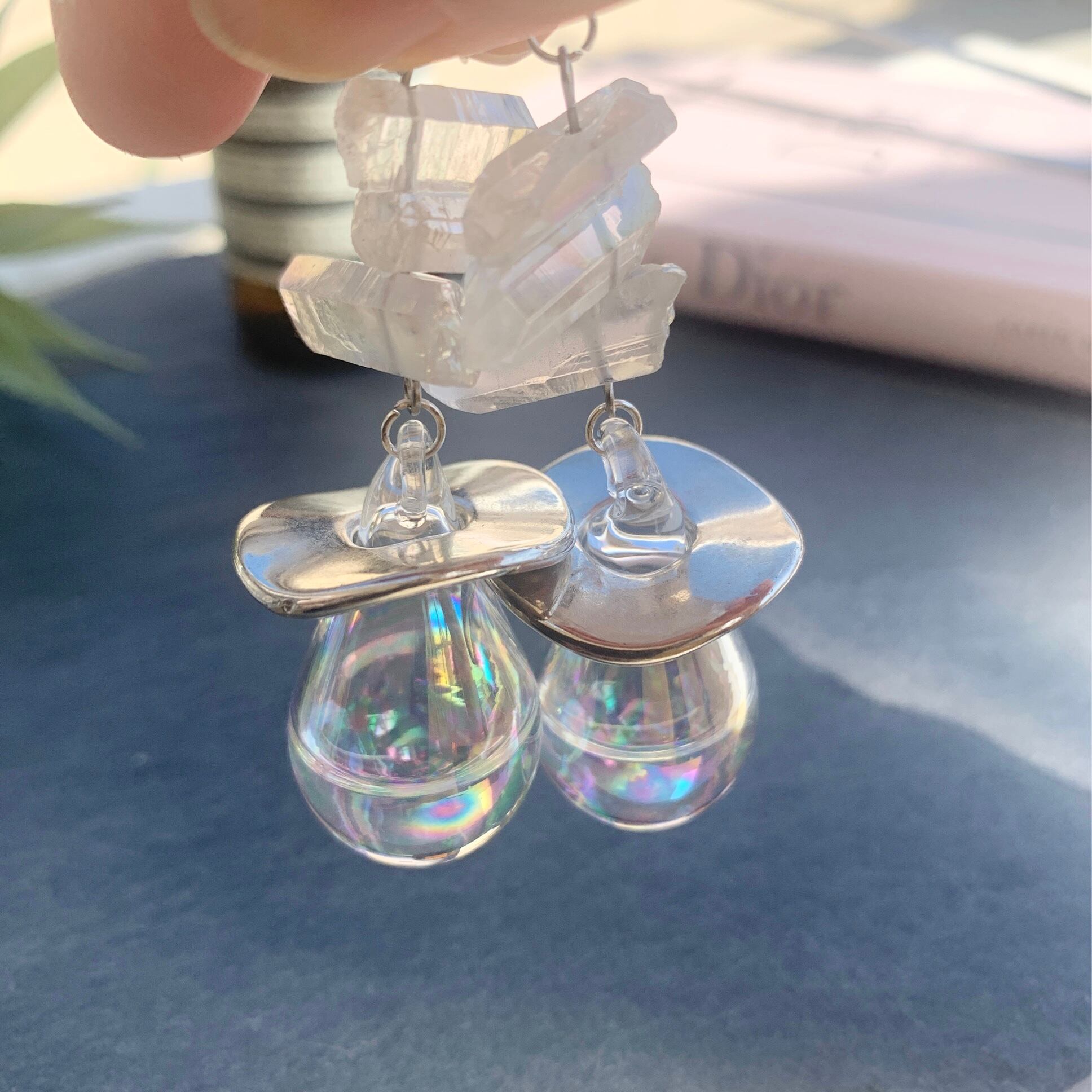 オーロラ色の天然水晶に電気メッキが施されたオーロラクリアクリスタルの角度によって色んな顔を持つオーロラがとても神秘的で可愛いです。♡