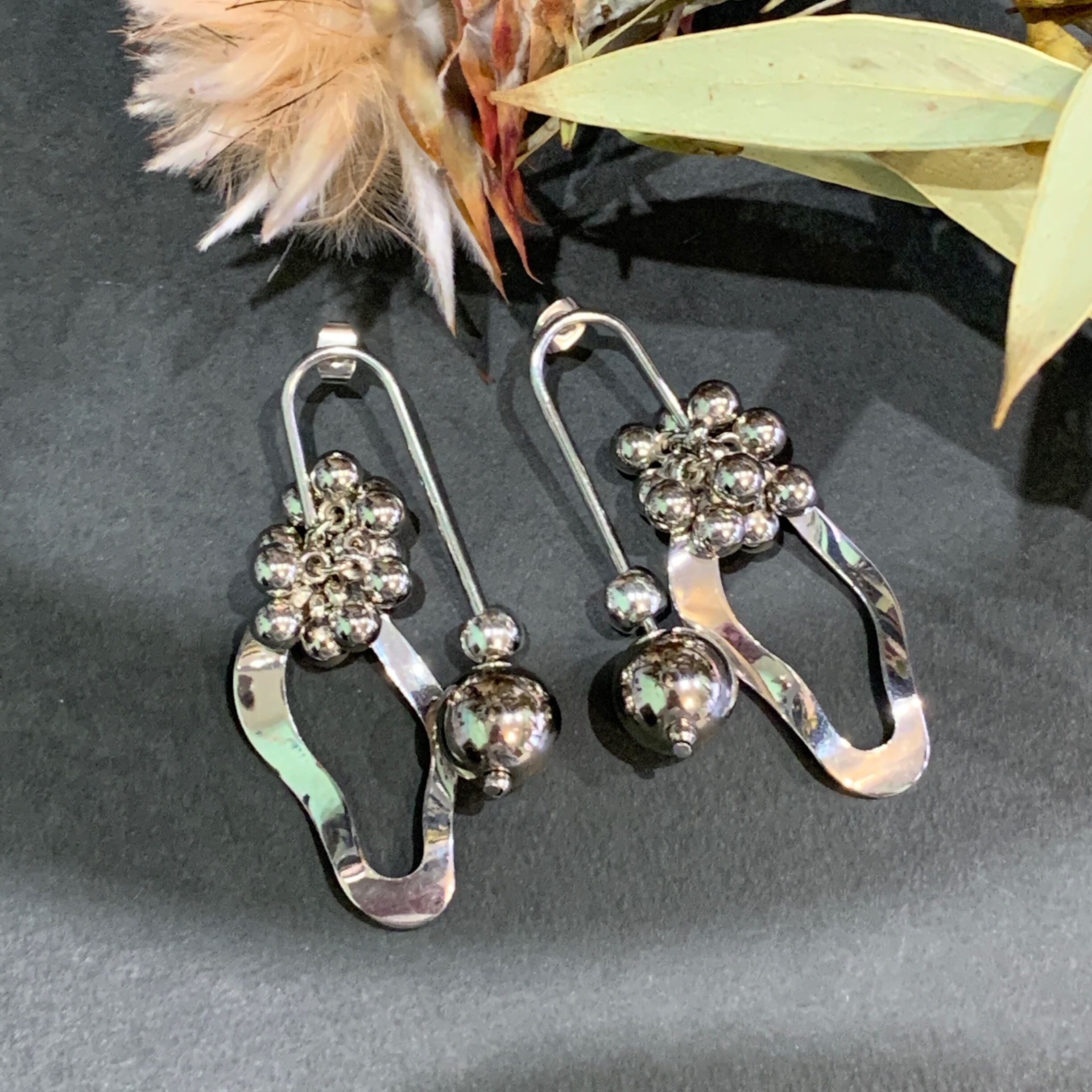 アシメトリーなロングスティクピアスポストにアシメトリーなデザインのパーツがオシャレでインパクトのあるシルバーピアス❤︎ファッションの差しアイテムにいかがですか