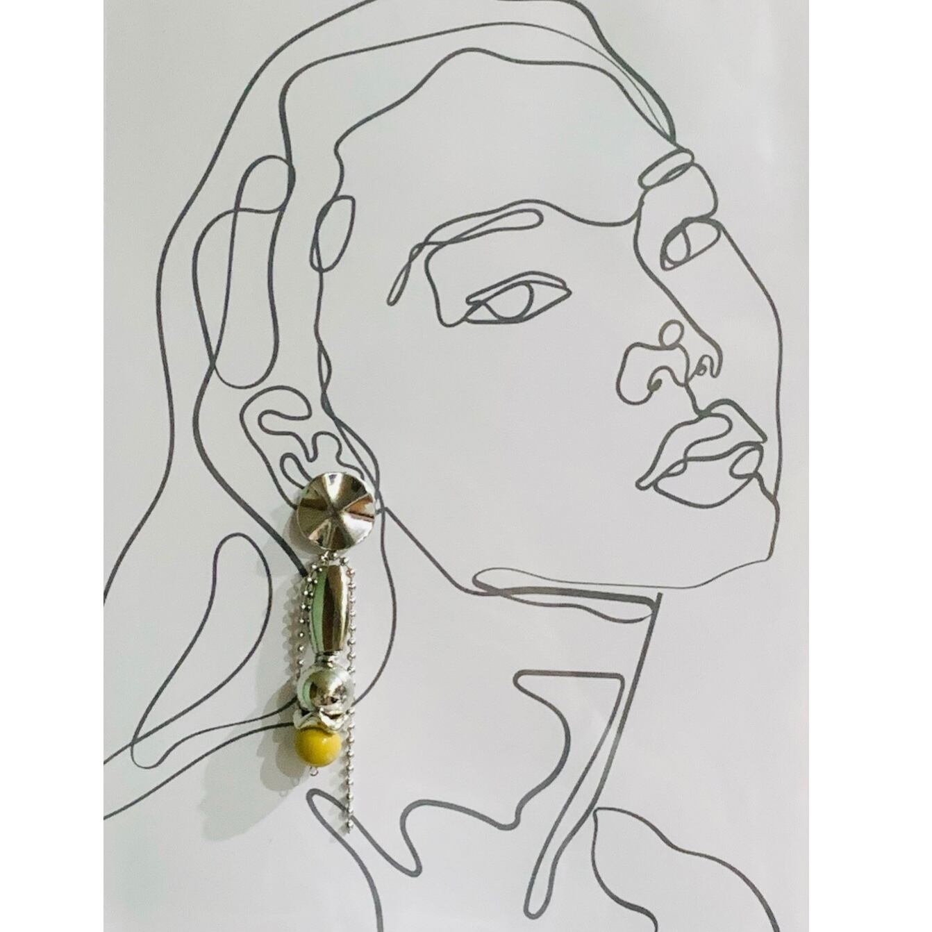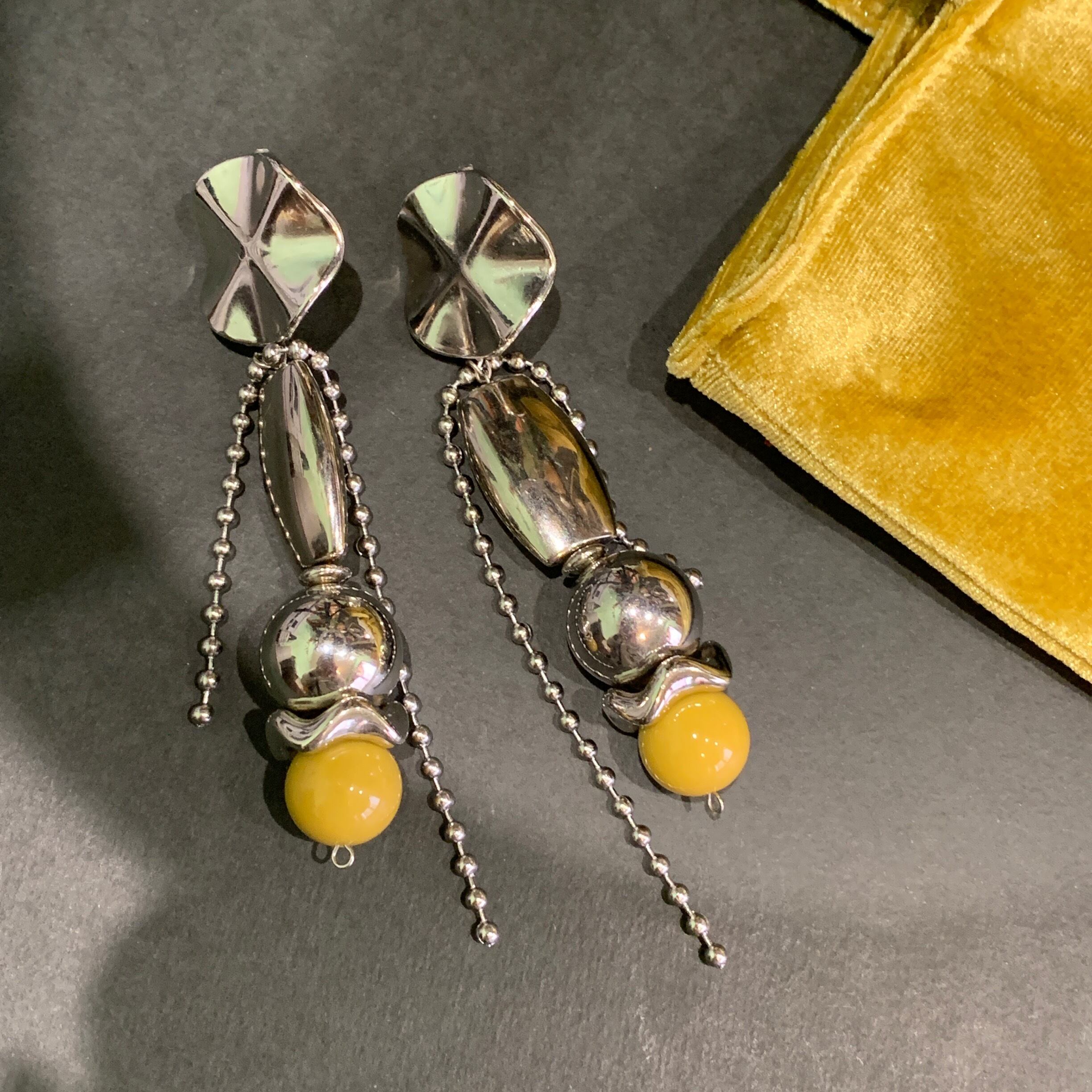 シルバーベースにマスタードカラーがポイントの大ぶりピアス