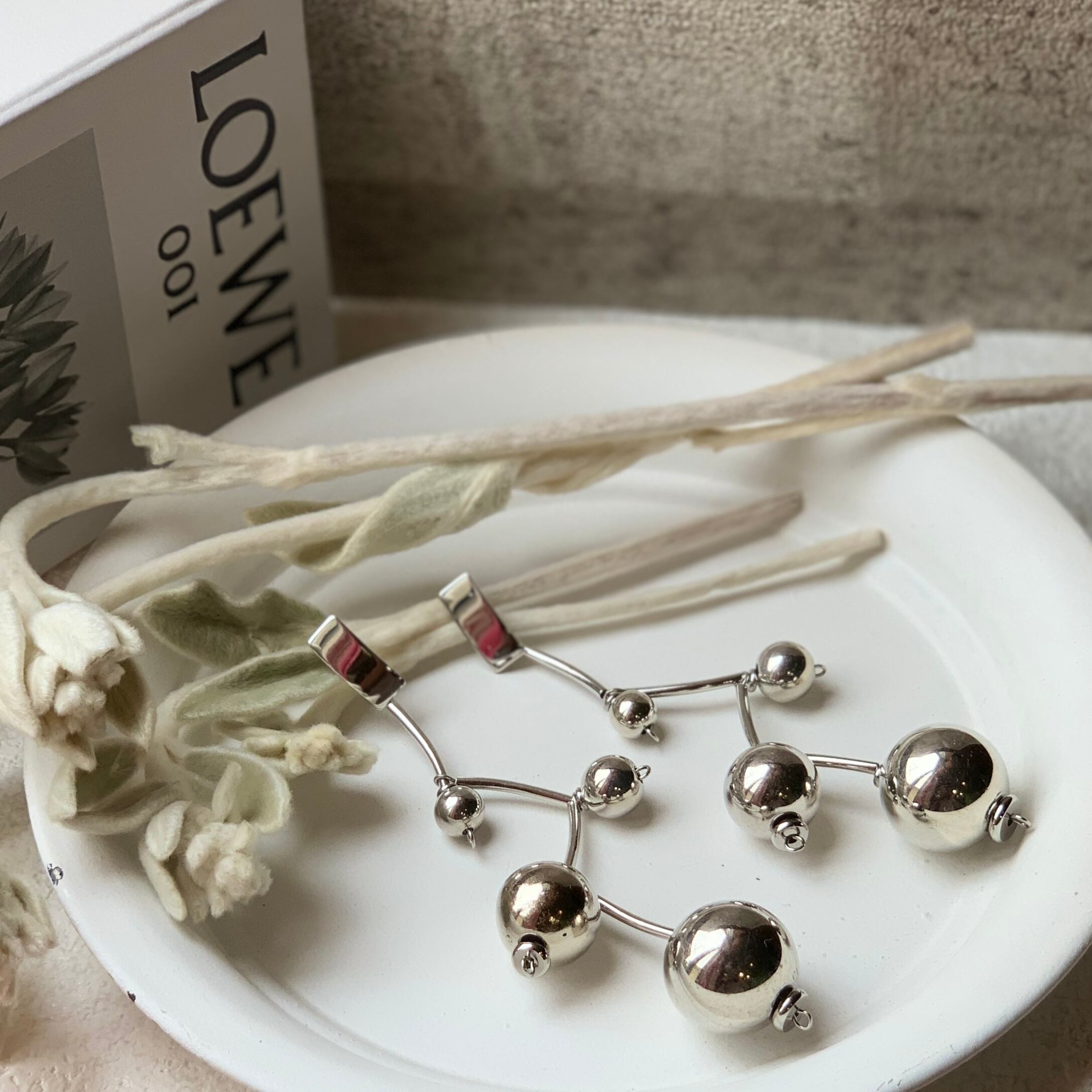 シルバーCLRの様々な大きさのラウンドビーズをチューブビーズでコネクト ᵕ̈