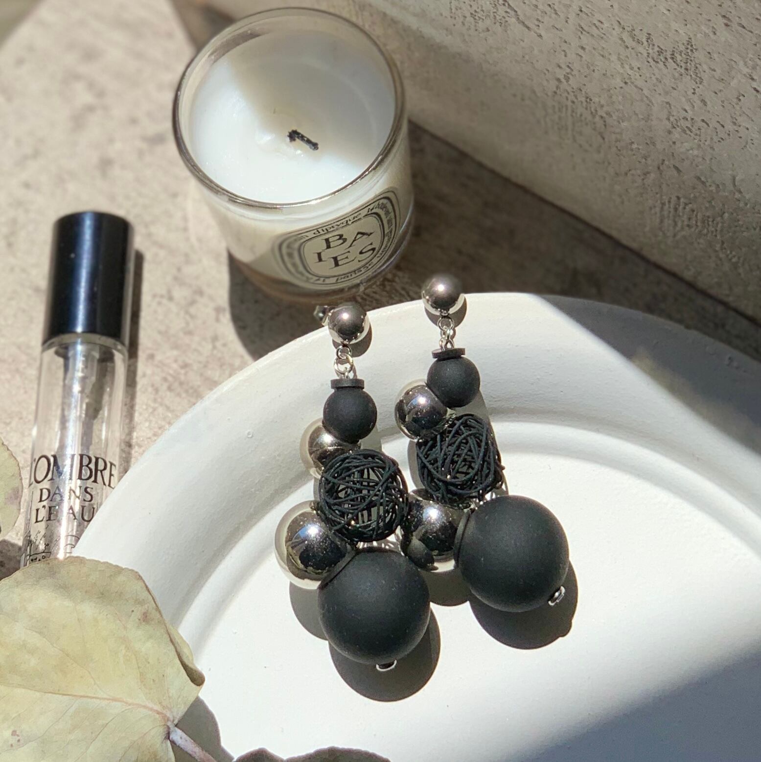 マットBlackとsilver CLRのラウンドビーズ+環境に優しいスプレー塗装のワイヤービーズで個性的に抜け感があって涼しげに合わせていただけるピアスです。是非 夏のBLACKコーデに合わせてクールに‥ᵕ̈*