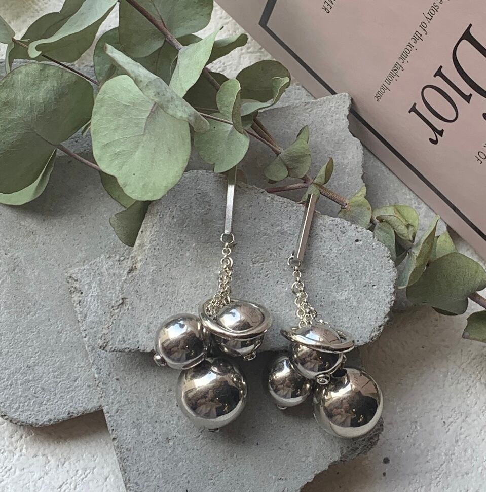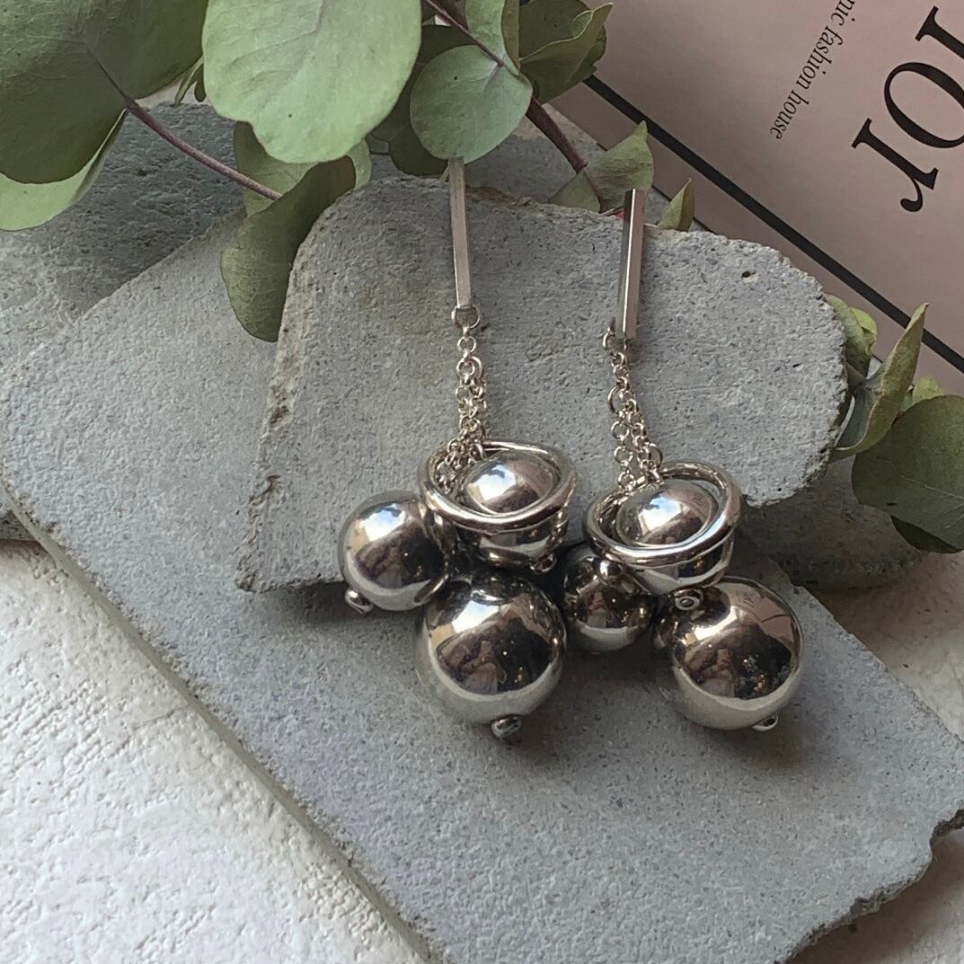 シャープな印象のシルバースティックポストに3つのラウンドビーズがユラユラ揺れて可愛いピアスです。