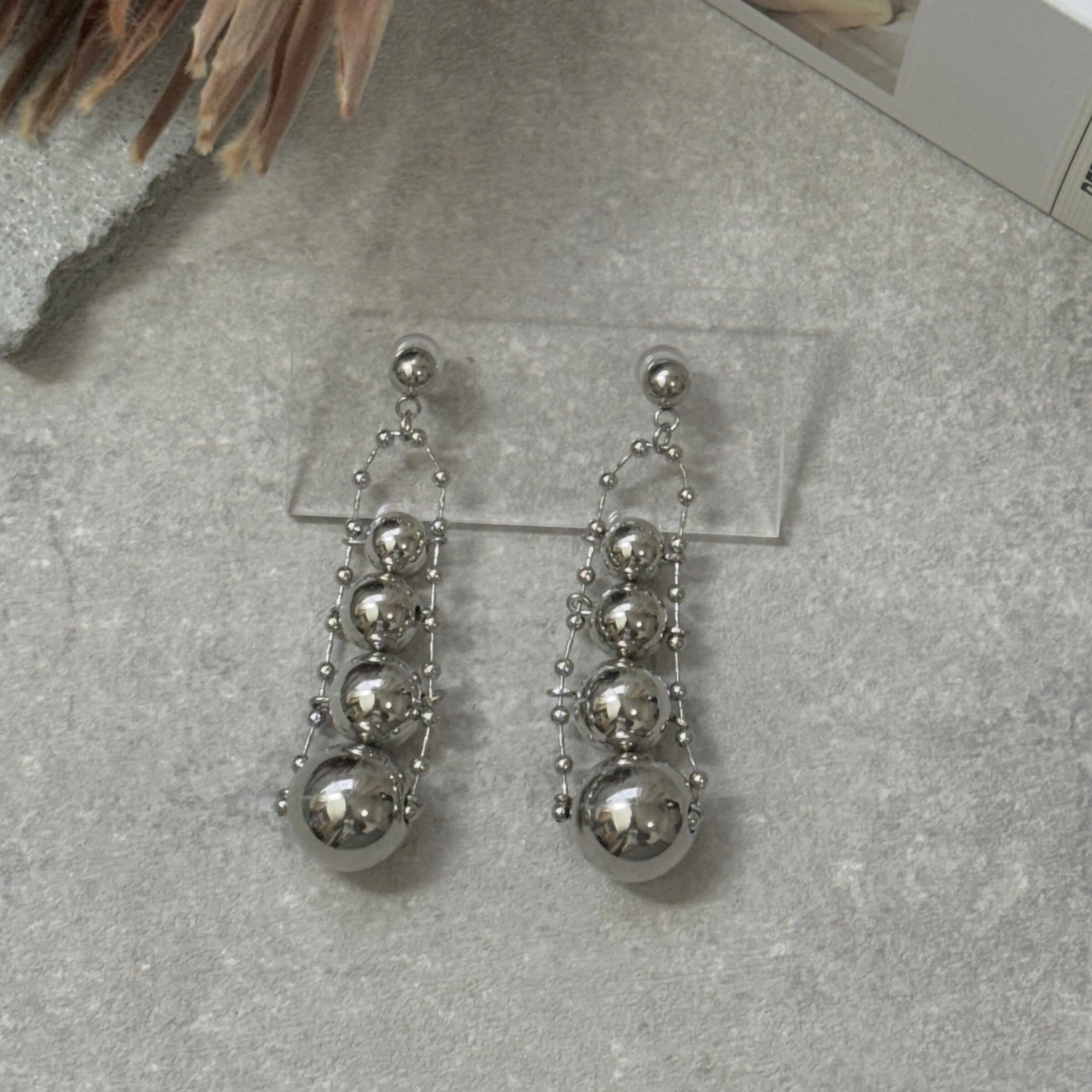 華奢なボールチェーンで連結させたデザインは、個性的でありながらも洗練された印象を与えます。モノトーンのアイテムにも相性抜群で、ユニークさを演出してくれます。さりげないアクセントとして毎日のコーディネートに取り入れてみて下さい